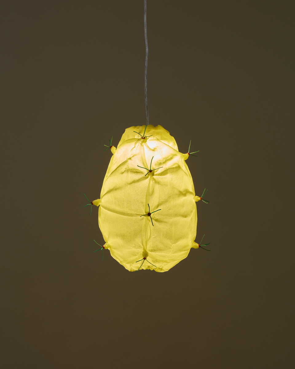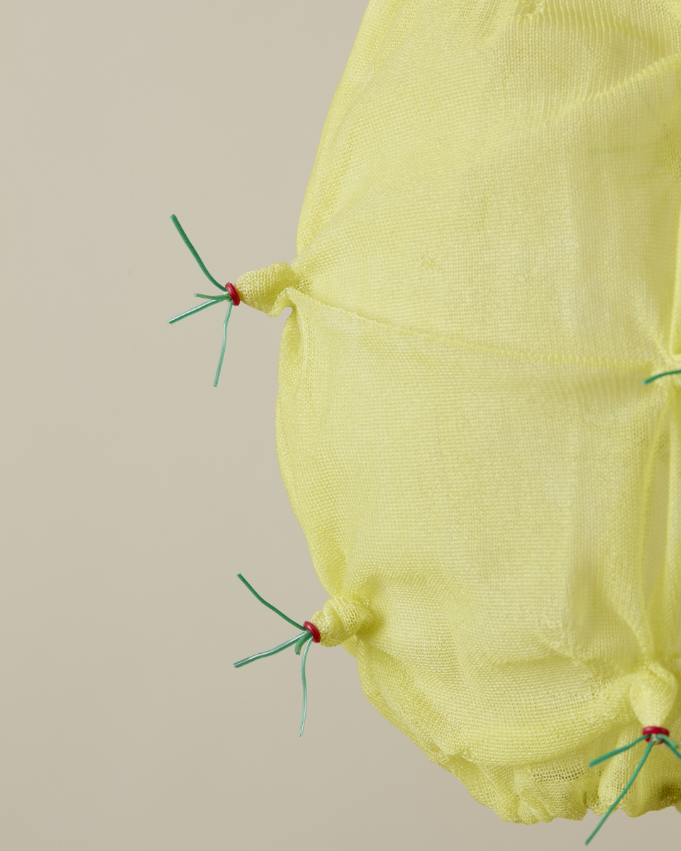 3D seamless nylon knit, hand-dyed Embroidered with wire elements and silicone pieces LED bulb, transparent cable.