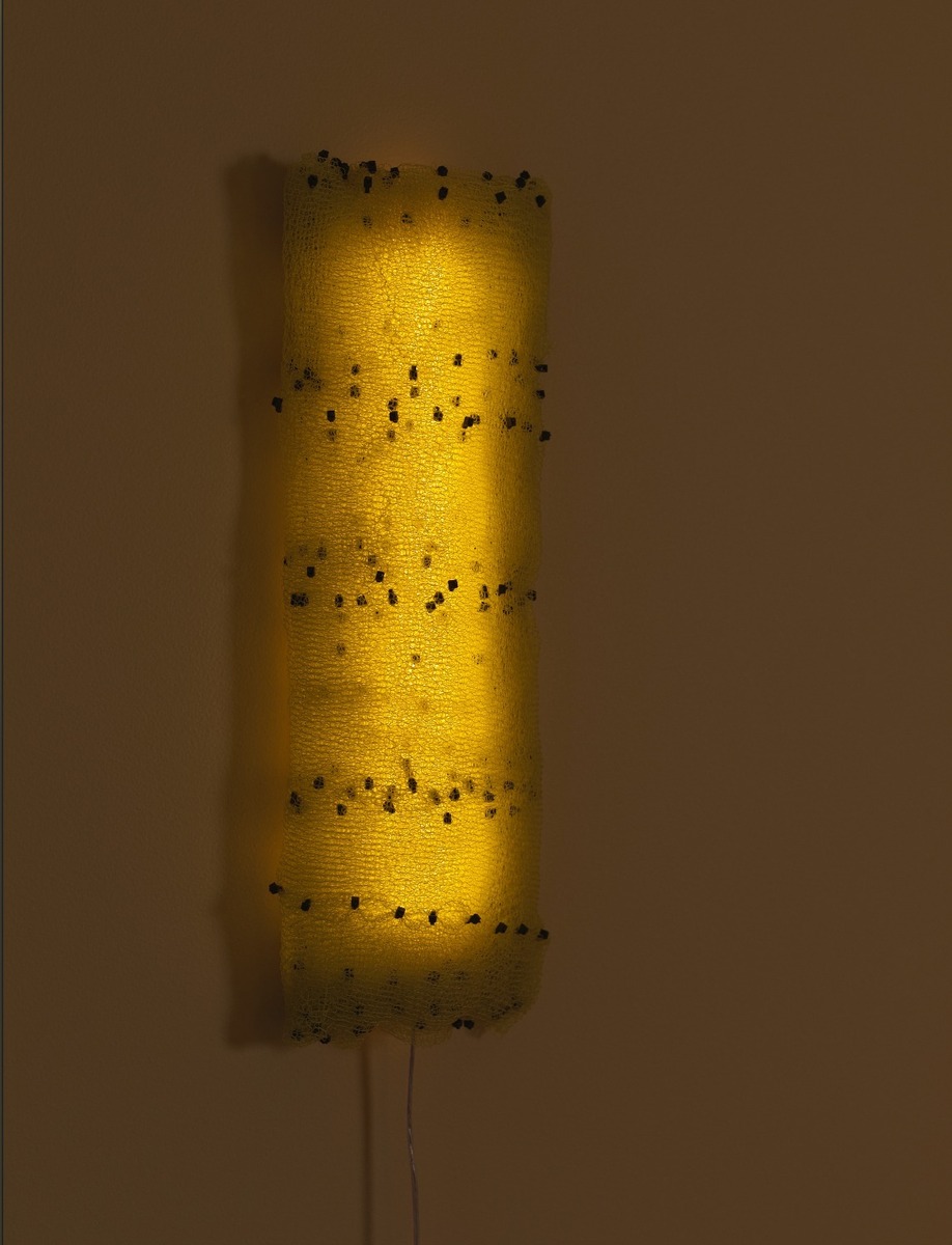 Nylon knit fabric joined with plastic ties LED bulb, transparent cable.